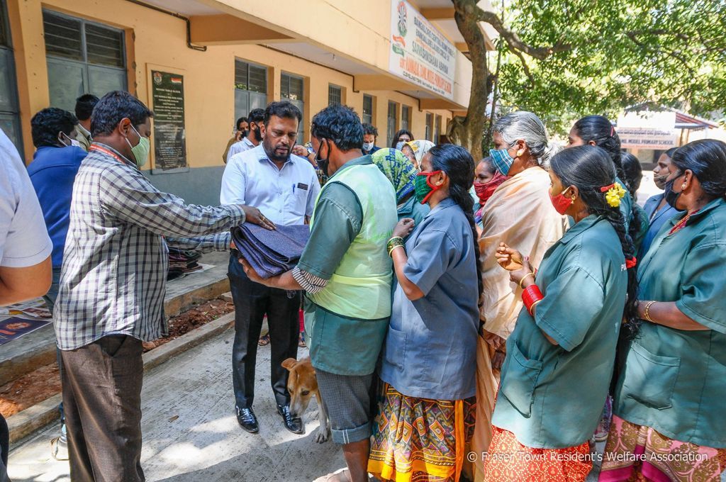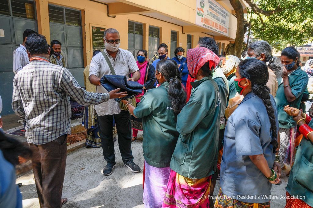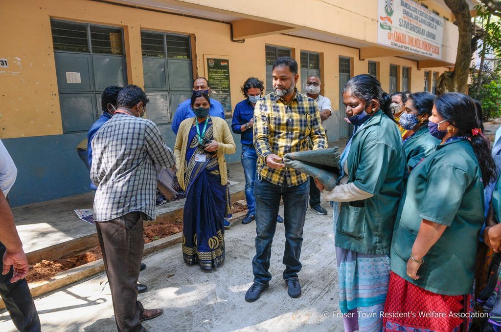A team from FTRWA and the nodal officer for Pulikeshi Nagar Mr. Suhail Ahmed, distributed blankets & interacted with about 135+ Pourakarmikas, members of the support teams, of tippers drivers and BBMP officers.